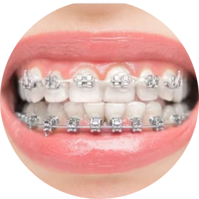 Utilização de braquetes e fios metálicos para movimentar os dentes e corrigir a posição dos dentes e a mordida.